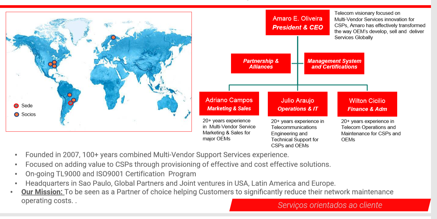 • Liderados por executivos com ampla experiência em serviços de todos os fornecedores de equipamentos de rede do setor